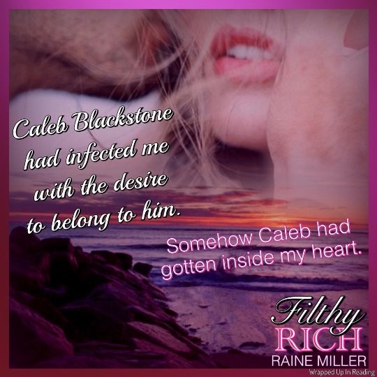 Fans of Raine Miller are in for a treat with this new spin-off series, The Blackstone Dynasty. I was a little sad that Ethan Blackstone never makes an appearance in this one but I do believe that Caleb Blackstone will melt a few hearts out there. Those of you who have read Raine’s other books, know all too well that she can deliver the decadent steam like no other and we get it and then some in Filthy Rich!!