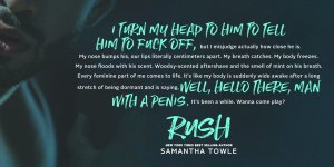 RUSH, the second installment from Samantha Towle’s ”Gods” series, was an incredibly sexy, angsty and entertaining read! I am loving this series so much. I have to say this was the perfect enemies-to-lovers romance! The story flowed perfectly and I loved both the Hero and Heroine.