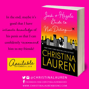 Christina Lauren have once again, created a story that I have fallen head over heels in love with! JOSH & HAZEL’S GUIDE TO NOT DATING is a hilariously funny, silly and sweet ”friends-to-lovers”, romantic comedy. The plot and the characters were simply