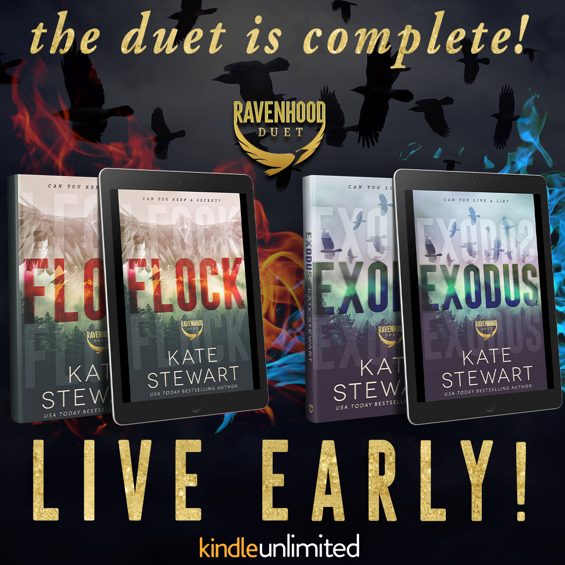 EXODUS, book two, is the explosive conclusion in The Ravenhood Duet from best-selling author, Kate Stewart, is LIVE! Get ready for a sinfully ๐๐๐, ๐๐๐๐๐๐, ๐๐๐๐๐๐๐๐๐๐๐๐๐๐, and ๐๐ช๐๐๐๐๐ love story filled with suspense, a little action, and ๐๐๐. ๐๐
